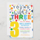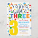 Celebre o grande dia do seu pequeno aventureiro com o nosso convite para aniversário de 3 anos 'Jovem, Selvagem e Três'! Este design lúdico apresenta cores primárias ousadas e bolinhas alegres, criando uma vibração divertida e vibrante perfeita para uma festa infantil. O estilo retrormoderno funciona como excelente para rapazes, raparigas ou celebrações neutras em termos de gênero, fazer-o ideal para um aniversário infantil, tema de circo ou baluarte de primeira cor.