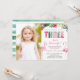 Convites de cartão com fotos tropicais para o terceiro aniversário da sua menina, ela é jovem, selvagem e três!