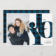 Apresentando uma xadrez de bufalos azul e preto típica / palavra padrão verificada "Joy" esta placa de gingham moderna inclui um grande espaço vertical à esquerda para você obter a melhor foto de retrato e texto preto que pode ser personalizado. Fácil de personalizar, faça uma impressão de excelente com este cartão de saudação ainda moderno e rústico. A cor azul pode ser facilmente alterada para ajustado do seu esquema de fotos coloridas.