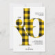 Os cartões tipográficos de Cartões de natal russos e modernos apresentam "JOY", soletrado em letras com xadrez de búfalos amarelo e preto / padrão checado, com espaço para mensagens pessoais. Personalize com ano, nome(s) ou saudação personalizada abaixo. Personalize a parte traseira com a foto do retrato do quadro do cheio.