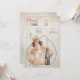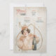Elevem o seu casamento ou evento especial com este cardápio e cartão de bebidas à estilo Art Nouveau. Apresentando uma elegante mulher enfeitada em um vestido de cor de pêssego e uma peça floral, segurando uma garrafa de champanhe, o design exude o charme de vintage e a celebração. O delicado fundo ao estilo aquarela com salpicos de ouro de champanhe adiciona sofisticação, enquanto a expressão alegre cria um ambiente animado e convidativo. Perfeito para temas de casamento vintage, romântico ou caprichoso, esta carta personalizável lista lindamente suas opções de cozinha e bebida.