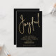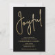 JOYFUL em um script de folha de ouro falso é destaque nestes convites de festa pretos, perfeito para qualquer ocasião de Natal. Itens CORRESPONDENTES em nossa coleção.