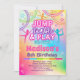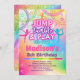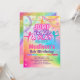 Convite de aniversário do tema ginástica em cores brilhantes do arco-íris para meninas.