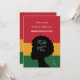 Um cartão afro-americano com listras vermelhas, amarelas e verdes em negrito e uma silhueta de uma mulher. Use este cartão como um convite ou como cartão de saudação. (Imagem por Vecteezy). O cartão é fácil de personalizar com sua redação, fonte e cor da fonte. Não é exatamente o que você está procurando? Todos os nossos produtos podem ser personalizados para atender às suas necessidades sem nenhum custo adicional. Basta entrar em contato conosco em heartfelthelper@gmail.com. Produtos coordenados disponíveis a seu pedido sem nenhum custo adicional.