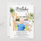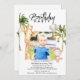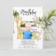 A parte de trás do convite Festivo BIRTHDAY tem palmeiras tropicais e um animal da selva.