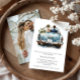 This charming reception-only invitation features a whimsical watercolor illustration of a newlywed couple riding away in a vintage blue convertible, accented with soft floral details and a joyful, celebratory feel. The artwork is light and airy, set against a clean white background that keeps the focus on the romantic scene. Below the illustration, elegant, classic typography presents the reception details in a warm and inviting tone, making it clear that guests are being welcomed to celebrate the marriage after an intimate ceremony. The overall design blends vintage charm with modern simplicity, perfect for a relaxed yet stylish post-wedding celebration.