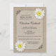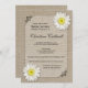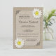 © 2013 Designs socialitas. Nosso histórico de juta rústico e convite para design de margarida branca é perfeito para qualquer país ou reunião rústica. Uma combinação encantadora de textura e elementos design femininos para um chá de panela romântico. POR FAVOR, OBSERVE QUE AS FLORES E O FUNDO DA JUTA SÃO IMAGENS QUE SÃO IMPRESSAS NO CONVITE E NÃO SÃO REAIS. Se você precisar de ajuda para personalizar ou precisar de produtos de casamento adicionais com este design, entre em contato com Designs Socialite.