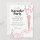 Este convite de festas personalizado apresenta um tema Noite de Karaoke em um fundo branco. Uma imagem de um microfone cor-de-rosa com estilo brilhante é colocada à direita com notas de música cor-de-rosa brilhantes impressas acima e na parte inferior. Outra banda de notas de música é impressa no verso do convite.