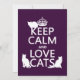 Aqui se lê "Keep Calm and Love Cats". Silhuetas de gatos sentam-se ao lado das cartas. É um belo design, excelente para qualquer um que ama gatos, ou que trabalha com gatos.