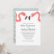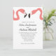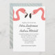 Design branco leve para casamentos de praia ou destino, esse convite apresenta um par de flamingos na frente com areia de praia soprando no verso. Personalize com seus detalhes de casamento substituindo o texto de amostra mostrado na modelo de design. Você pode mudar o texto para se adequar ao seu gosto pessoal e estilo.