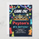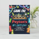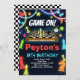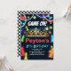 Convite de aniversário colorido do tema do xadrez para crianças.