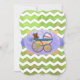 O Chá de fraldas de Zig Zig Zag Verde, Carruagem de Bebê, Bonita, apresenta os presentes e os acessórios do ITD Colors Galore, com o nosso limão de cor doce e o padrão de zag branco, com a nossa textura de fundo, com uma banda roxa texturizada e uma peça decorativa, com um bonitinho bebê, segurando um ursinho de pelúcia fofinho. Na parte de trás, o padrão do diafragma continua com uma banda roxa que tem um padrão de bonitinhos brincando com ele. Acompanhe todo o seu bebê primeiro, começando pelo seu chá de fraldas de Kiwi Bash.
