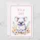 Um bonitinho urso koala sentado em flores cor-de-rosa é personalizado, é um chá de fraldas feminino.