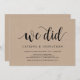 Este cartão de convite temático Kraft Fazenda Rústica (Nós fizemos) é perfeito para o seu casamento elopement celebração / festa de anúncio. Adicione seus detalhes na fonte preta correspondente / letra.