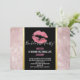 Convite de despedida de solteira com um fundo composto por folhas tropicais modernas e cor-de-rosa dourado. Sobreposto no topo há uma moldura preta com uma borda com gradiente dourado, dentro dela há lábios cintilantes cor-de-rosa.