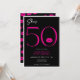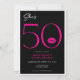Moderno e crítico, este convite de aniversário declara, "ela tem 50" e combina preto clássico e branco com sotaques de rosa brilhante, com um par lúdico de lábios. É um design mínimo é um design simples e divertido para celebrar o aniversário do marco. Criado pela imprensa simplesmente de farmácia.