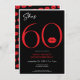 Moderno e crítico, este convite de aniversário declara, "ela tem 60" e combina preto clássico e branco com sotaques de vermelho vivo, com um par lúdico de lábios. É um design mínimo é um design simples e divertido para celebrar o aniversário do marco. A parte traseira retém uma área para um código QR para resposta RSVP. Criado pela imprensa simplesmente de farmácia.