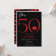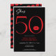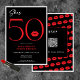 Moderno e sofisticado, este convite de aniversário declara, "ela está fazendo 50" e combina preto e branco clássicos com sotaques de vermelho brilhante, com um par de lábios divertidos. Seu design minimalista é simples e divertido para celebrar o aniversário marcante. O verso contém uma área para um código QR para resposta de RSVP. Criado por Simply Farmhouse Press.
