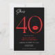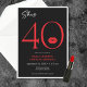 Moderno e chique, este convite de aniversário declara, "ela tem 40 anos" e combina preto e branco clássicos com acentos de vermelho brilhante, com um par de lábios divertidos. Seu design minimalista é simples e divertido para celebrar o aniversário marcante. Criado por Simply Farmhouse Press.