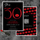 Moderno e chique, este convite de aniversário declara, "ela tem 30" e combina preto clássico e branco com sotaques de vermelho, com um par lúdico de lábios. É um design mínimo é um design simples e divertido para celebrar o aniversário do marco. A parte traseira retém uma área para um código QR para resposta RSVP. Criado pela imprensa simplesmente de farmácia.