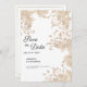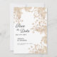 Esse chico de luxo e o moderno casamento Salve a data é o design perfeito para complementar um evento clássico e sofisticado. Ele apresenta um simples e elegante local floral branco e dourado com a moderna tipografia negra em fundo branco. Este design contemporâneo, único e clássico impressionará todos os seus convidados. Todas as designs são impressas.