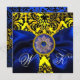 Joia de flor dourada elegante, Art Nouveau damasco sofisticado e único com pedras preciosas de safira azul 3D vibrante, facilmente personalizável com seu texto e iniciais como cerimônia de casamento, anúncio nupcial, festa de 16 anos, cartão de lugar, aviso de data, agradecimento, chás de bebê, chás de noiva, festas de aniversário de quinceañera, Bat Mitzvah, chás de noivado romântico, Natal, feriado, escritório, reuniões familiares, celebrações de Ano Novo, aniversários, encontros, formaturas escolares, concerto, recital ou qualquer outro evento que você deseje!
