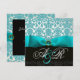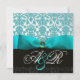 CONVITE LAÇO AZUL TURQUESA BRANCO PRETO DAMASCO MONOGRAMA