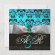 CONVITE LAÇO BRANCO AZUL TURQUESA PRETO DAMASCO MONOGRAMA