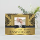 Convite Laço de Damasco Dourado Foto Aniversário de 50 Ano