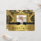 Convite de Aniversário Dourado e Preto. Elegante laço de jóia preta e desenho de damasco dourado. Eles NÃO têm Jóias ou Laços Reais!