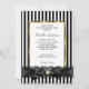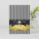 Convite de festa de aniversário simples com laço de renda preta e branca com listras e pérola dourada. Pode ser usado para qualquer evento! Elegante laço de joia e design dourado. Eles NÃO têm Joias ou Laços reais!