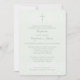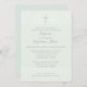 Este convite bonito e delicado é perfeito para o primeiro comunhão santamente da sua criança o baptismo ou. Os acentos deste design consistem em um laço floral branco delicado em uma luz - fundo do opal do verde azul. Verifique para fora os acessórios, os presentes, os favoritos para festas e os artigos de papelaria de harmonização.