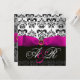 CONVITE LAÇO PINK FUCHSIA BRANCO E PRETO MONOGRAMA DAMASCO