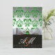 Convite LAÇO VERDE BRANCO E MONOGRAMA DE DAMASCO PRETO a O