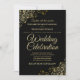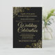 Este belo convite de casamento apresenta um simples, mas elegante design de texto dourado sobre fundo preto com bordas de filigrana floral de folha de ouro. Bem-vindos seus convidados para compartilhar seu dia especial de celebração de casamento com estes maravilhosos convites sofisticados com texto dourado. Um casamento é uma celebração única de amor, amigos e família. Torne seus núpcias realmente memoráveis com estes convites bonito e na moda. Este convite é totalmente personalizável, para que você possa alterar o texto de acordo com sua situação e suas necessidades.