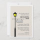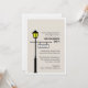 Convite para Posto Lâmpada Elegante que contém um posto de lâmpada acesa com um sinal suspenso nele, onde o texto pode ser personalizado. Ideal para uma festa de inauguração em sua nova casa. © Manhã 6