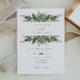 Este convite para o casamento apresenta uma cor aquática boêmica verde e uma fonte elegante de caligrafia. Este é o convite perfeito para o seu boho, jardim ou casamento no inverno.