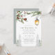 Convide os convidados para celebrar o seu dia especial com este encantador convite de casamento rústico de inverno, apresentando um design atemporal de pinheiros, elementos botânicos delicados e uma lanterna vintage. Perfeito para casamentos de inverno com um tema natural ou rústico, este convite traz o charme aconchegante da estação à vida. Ideal para casamentos na floresta, lodge ou montanha, é uma maneira linda de definir o tom para uma celebração romântica de inverno. Personalize com os detalhes do seu casamento para torná-lo exclusivamente seu.