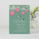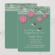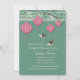 Quatro, penduradas, lanternas de papel chinesas estão penduradas num ramo de bambu. Dois pássaros sobrevoam sua personalização neste convite delicioso. Adequado para qualquer ocasião feliz. Quer economizar dinheiro? Impressão este convite no papel básico de canto quadrado.