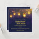 Convites de casamento virtuais com lanternas de ornamentado em um fundo de bolso roxo.