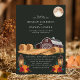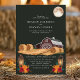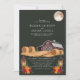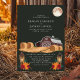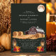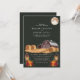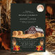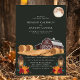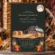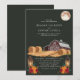 Este convite de casamento rústico captura a essência de uma noite de outono com um charmoso celeiro vermelho, lanternas brilhantes e fardos de feno aconchegantes sob uma lua cheia. O fundo verde escuro realça os tons terrosos quentes, criando uma atmosfera serena e convidativa perfeita para um casamento no campo. Este design combina lindamente elementos rústicos da fazenda com a elegância de uma celebração ao luar, tornando-o uma escolha ideal para casais que planejam um casamento de outono.