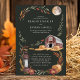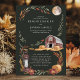 Este convite de casamento rústico captura o charme de uma noite de outono com um celeiro aconchegante, fardos de feno e uma lanterna vintage sob o brilho suave de uma lua cheia. Enquadrada por folhas outonais quentes, o fundo verde profundo acentua os tons terrosos ricos, criando uma atmosfera serena e convidativa perfeita para um casamento no campo. Este design é ideal para casais que buscam um tema romântico e rústico para o seu dia especial.