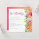 Um elegante Convite de aniversário 60º e moderno. O design apresenta uma borda floral em tons de verde rosa, laranja e sorvido. Personalize com todos os seus detalhes importantes, incluindo o nome de convidado, data, hora, local e informações de RSVP. Esta modelo é para 60 anos, mas a idade é facilmente modificada para qualquer idade. O inverso é coordenado num efeito texturizado de rosa e laranja.
