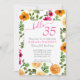 Simples cor d'água cor rosa e laranja convite floral de 35 anos com escrevendo de script elegante.