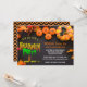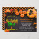 Tema elegante, mas do divertimento do Dia das Bruxas do traje do partido dos convites do outono. O fundo é foto elegante do tablescape com as lanternas diminutas do o do jaque, bagas da queda, e as folhas de bordo alaranjadas contra um carvão vegetal enegrecem o fundo. O lado esquerdo lê "junta-se por favor nos para um partido do Dia das Bruxas & traja-se a competição" no olhar, no amarelo, na laranja, e no verde de néon, estilo assustador da rotulação. Detalhes do partido do Dia das Bruxas, incluindo a informação de RSVP, à direita em alaranjado e em branco. A parte traseira tem o fundo preto e alaranjado das listras da viga. Use a personalização ele botão para mudar o olhar do texto dos detalhes do partido - estilos de pia batismal, tamanhos, cores, ou colocação. Chique, mas convites bonitos do Dia das Bruxas prontos para ser personalizado com seus próprios detalhes do partido do Dia das Bruxas.