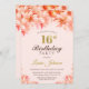 Leve o convite de aniversário 16 floral cor-de-rosa e dourado.
