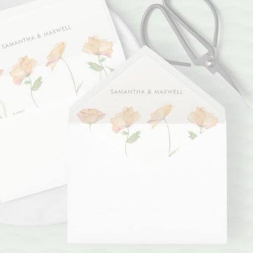 Estes convites de festa de noivado apresentam flores de papoila laranja de cor d'água. Use os campos modelo para adicionar seus detalhes personalizados. Solicite cartões impressos on-line ou convites imprimíveis. Escolha elegante para eventos com temas florais e jardins. Para ver mais designs como esta, visite www.zazzle.com/dotellabelle Arte a aquarela exclusiva e design por Victoria Grigaliunas do Do Tell A Belle.