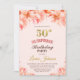 Rosa esbranquiçada e surpresa floral dourada 50º convite de aniversário.