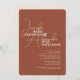 Um convite de casamento minimalista em laranja queimada / terracota com tipografia branca. Este convite lhe poupará dinheiro, há um modelo no verso para adicionar detalhes e o código de QR RSVP no verso para que seu convidado responda. Não é necessário comprar de cartões de inserção, envelopes ou postagem extras. Se precisar de ajuda para personalizá-lo, por favor, avise-me (Maria)... feliz em ajudar!