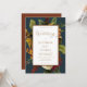 Um buquê floral etéreo em tons de branco de inverno, ouro, laranja e vermelho escuro com verde em um painel branco, dourado e laranja enferrujado sobre um fundo negro convida seus convidados para o que é certamente uma ocasião elegante de "Casamento" rústico memorável. As costas apresentam um fundo laranja enferrujado escuro. Basta adicionar seus nomes e detalhes do casamento para completar. Design composto por Holiday Hearts Design (direitos reservados).